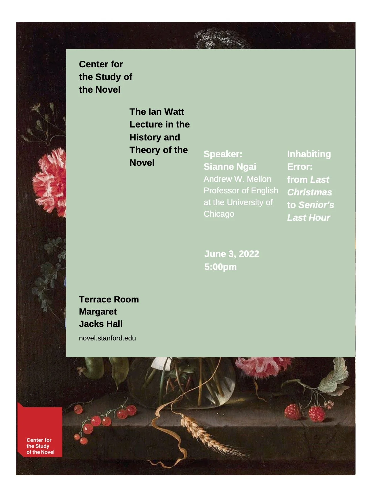 Join us at the CSN's annual Ian Watt Lecture in the History and Theory of the Novel event.